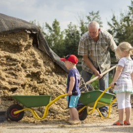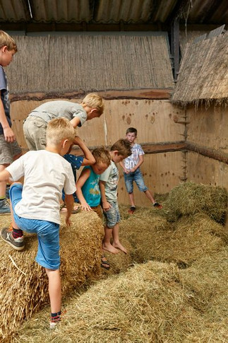 Het gras kriebelend tussen uw tenen, de kinderen een rode blos op de wangen van het spelen. De geur van hooi! Kinderen ravotten in de binnenspeeltuin of op de boerderij en ontdekken dat een koe als huisdier toch ook erg leuk is!